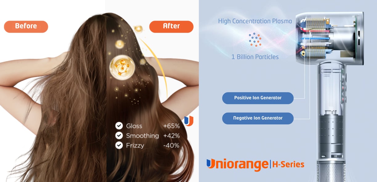 Discover how plasma hair dryer technology balances ions to reduce frizz, control static, and boost your hair's overall health and shine. プラズマヘアドライヤー技術がどのようにイオンをバランスさせ、髪のうねりや静電気を抑え、全体的な健康とツヤを向上させるかをご紹介します。